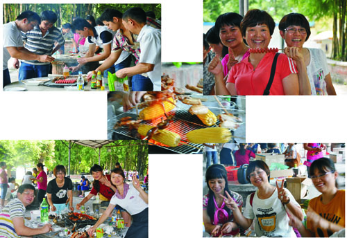 7月26日10:30,我們興高采烈地齊聚在金達公司大門,帶著豐富的美食、懷著陽光一樣的心情前往丹灶仙湖燒烤場。來到仙湖,天公作美、陽光明媚確是個戶外活動的好日子,大家早已迫不及待地開始生火、串雞翅、魷魚、火腿……。 相互協作、分工明確,一會兒,燒烤場中炊煙裊裊,一串串美食烤于爐中,慢慢地空氣中飄逸著美食的味道 。伴隨著音樂,我們繞著爐中坐,拿叉、涂料地有說有笑、各施其招 ;有的烤得外熟內生,有的天生就是廚子;時而引起周圍游客們投來羨慕的目光。到正午時天氣雖然有點熱,但早已與陣陣的歡笑聲中散走了。隨著打鬧、玩耍、游戲、觀光,很快斜陽已降臨,歡樂的聲音游蕩著,我們用相機在這里留下了美好的回憶,圓滿地結束了活動,踏上了回程的路上。