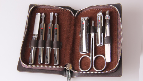 產(chǎn)品規(guī)格:130mm*82mm 產(chǎn)品重量:220g 天地盒規(guī)格:140mm*90mm*28mm 材質(zhì):PU皮+420不銹鋼+碳鋼+鋅合金 配件:平口指甲鉗、美容剪、斜口指甲鉗、眉夾、指甲銼、刮刀、死皮刀、耳挖 套裝顏色:啡色+彩紋